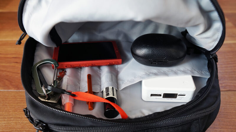 その為、メイン部にガジェット機器や貴重品を入れていると、万が一落下や気付かぬうちに紛失してしまう危険性がある。収納部が優秀なマンティスだが、こういった点は少々注意が必要だ。
