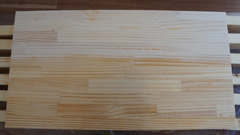 パイン材の棚板はキレイに加工されている場合が多いが、2×4材は切りっぱなしで細かな加工はされていないので、やするのが良い。